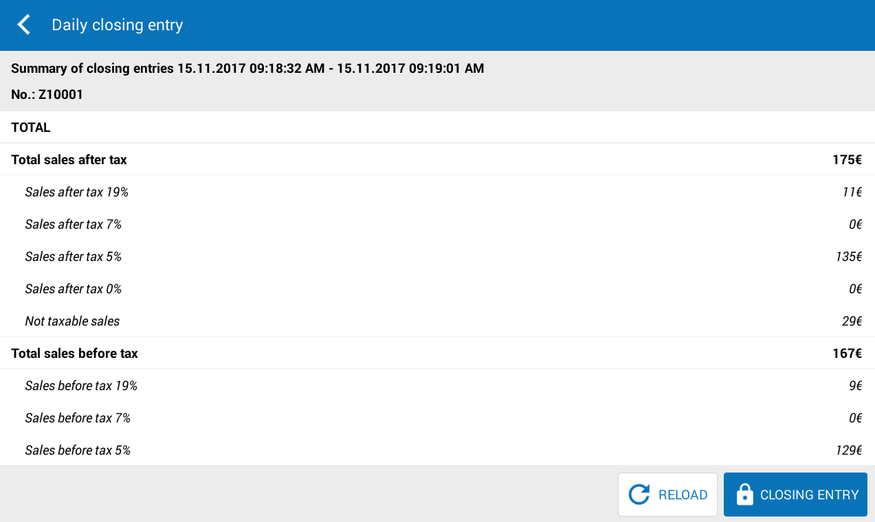 , select Daily closing entry.