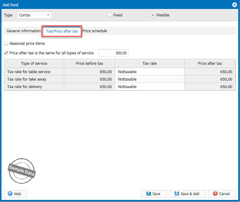 Go to Tax/Price after tax to add price of the combo.