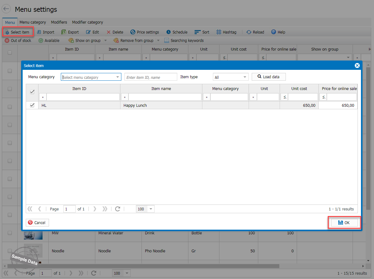 Go to Online sale/Online order page. Click Menu.