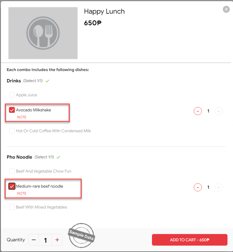 The manager can create and add flexible combo to the online ordering page. Then, the customers can take order of flexible combo on the online ordering page.