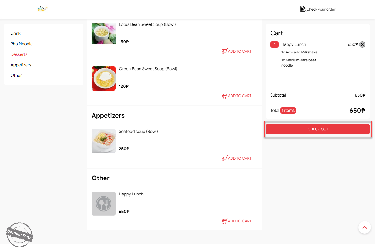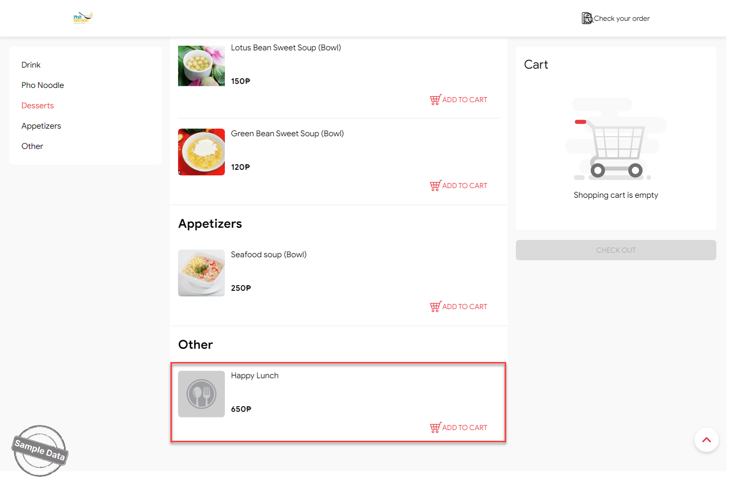 On the online ordering page, scroll down to the combo and click Add to cart.