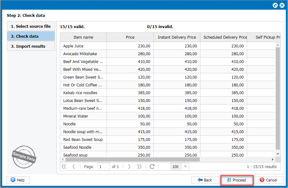Check data. Here the program will show valid and invalid items. Click Proceed to continue.