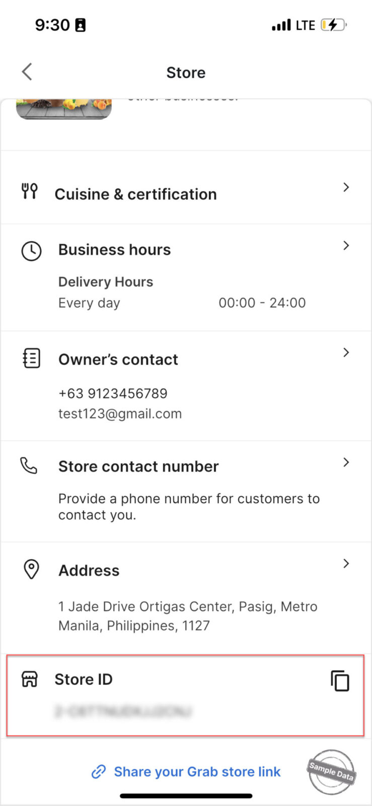 Scroll down to Store ID. Copy this ID and paste it on the Grab Merchant ID box.