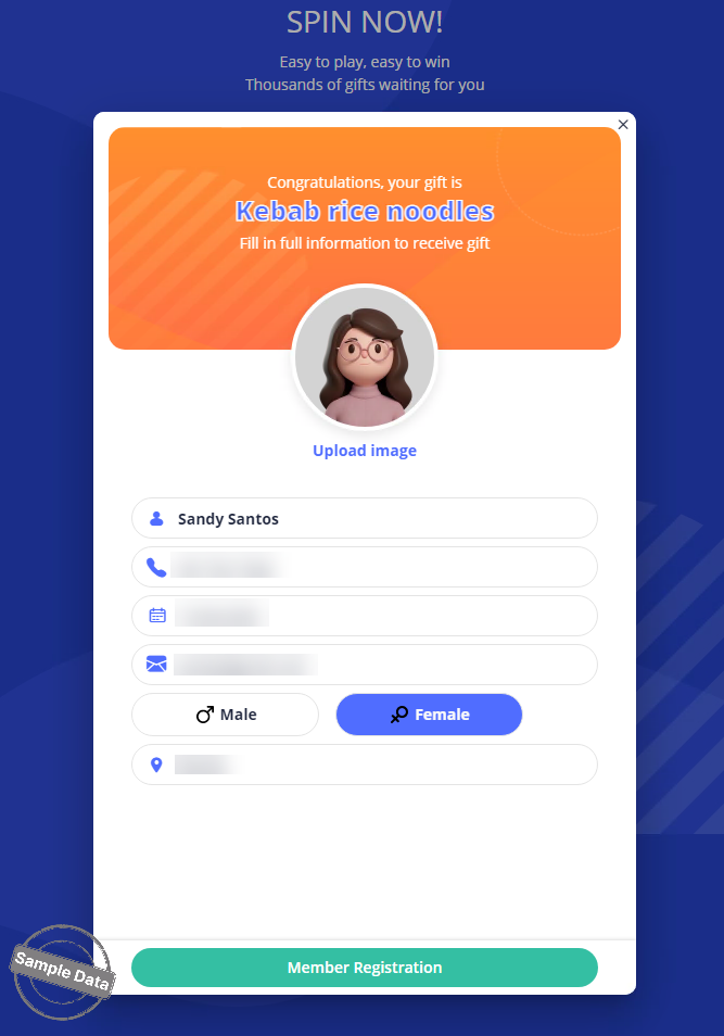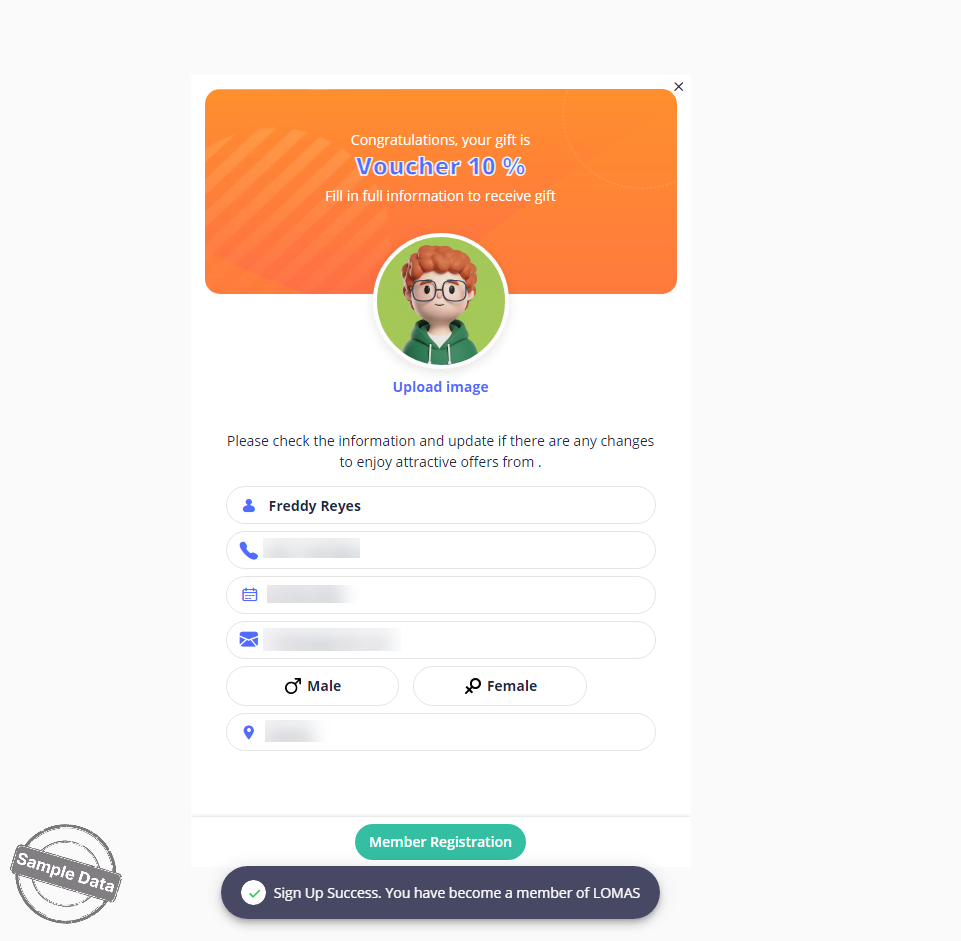 Upon scanning the QR Code or clicking the link, the customer fills in information and click Member Registration to get the offer.