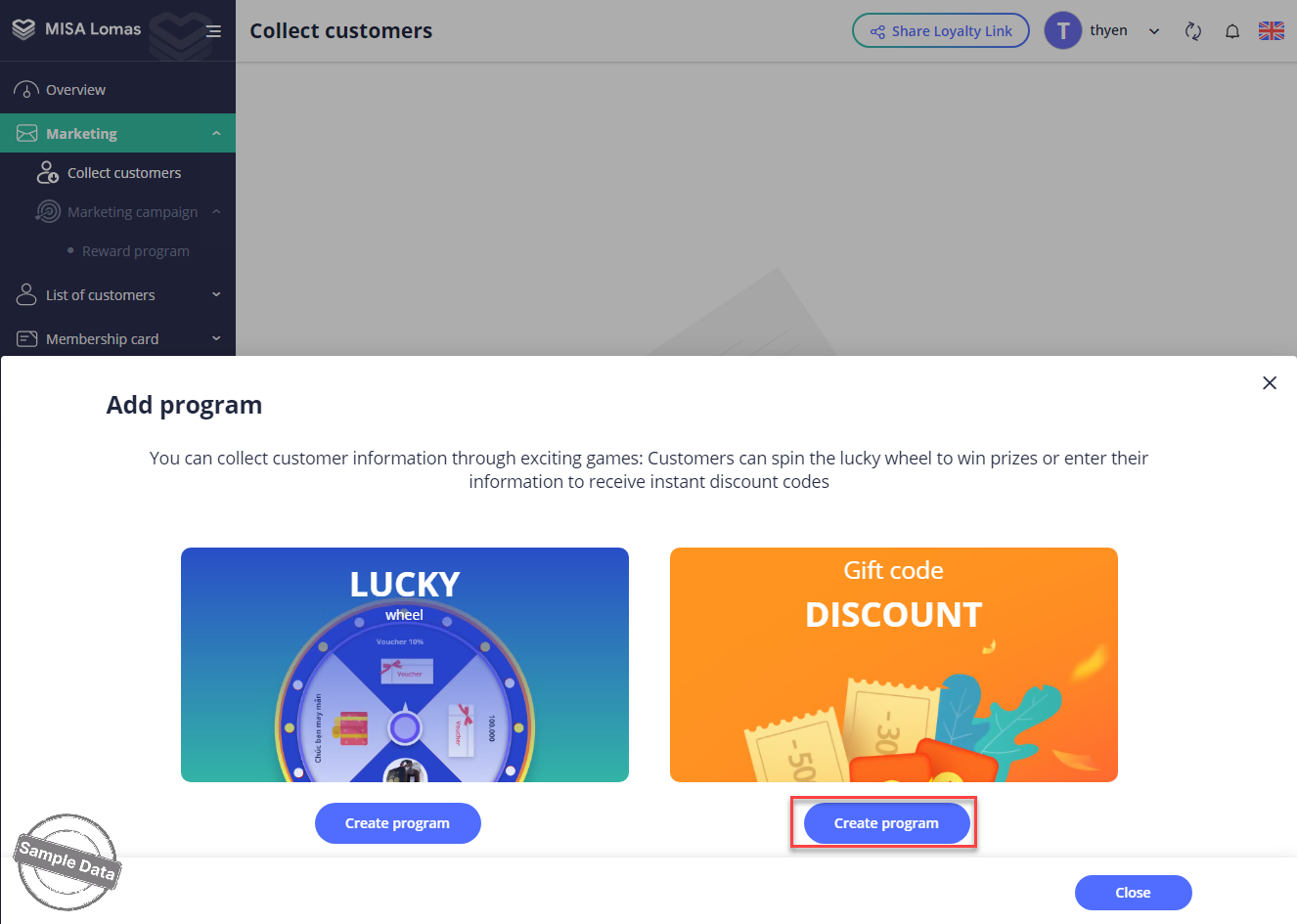 You can create one of these programs: Lucky wheels or Gift code discount.