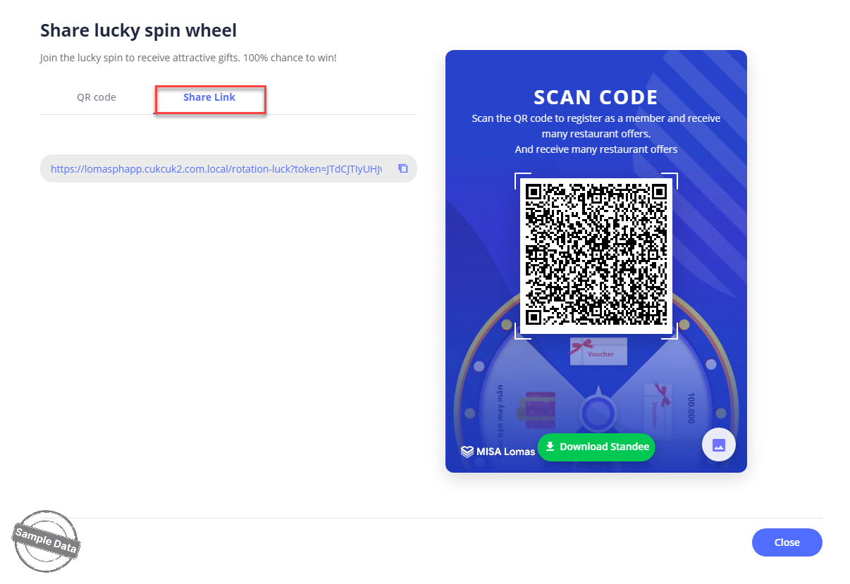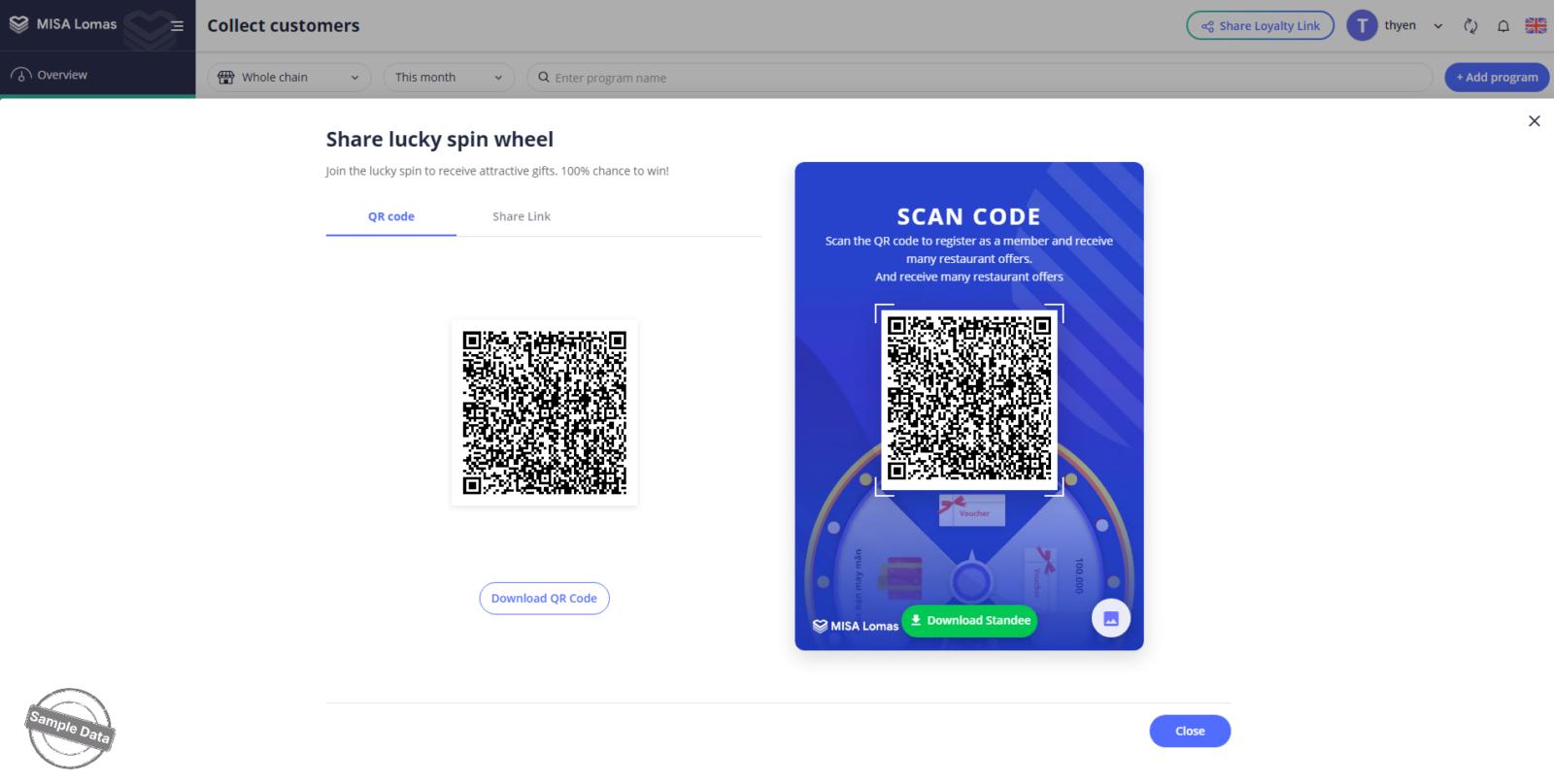 Upon scanning the QR Code or clicking the link, the customer clicks Spin reward.