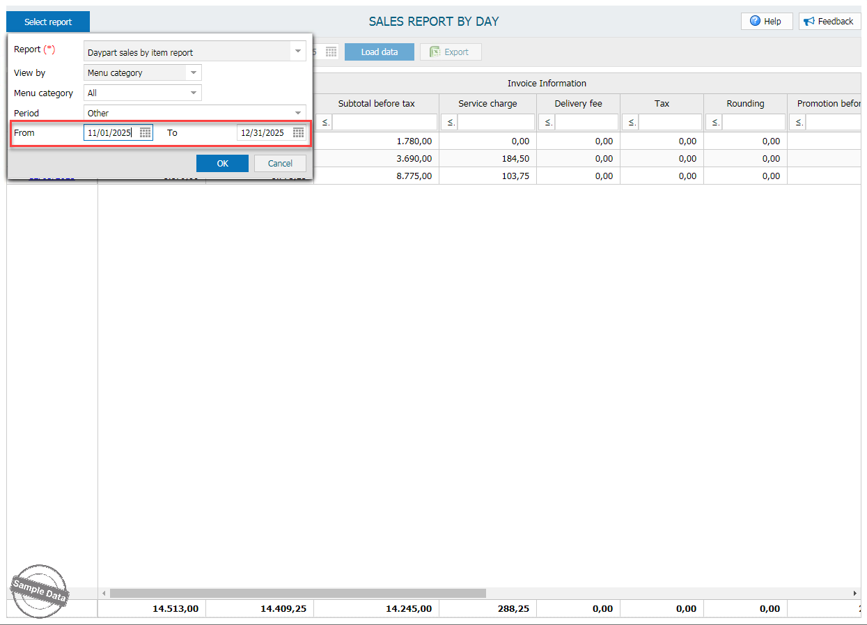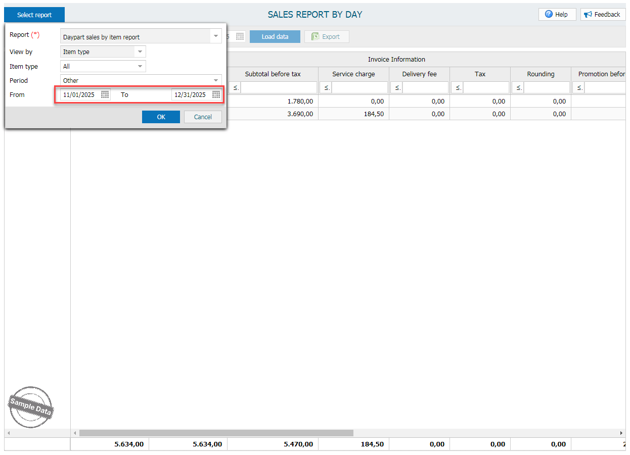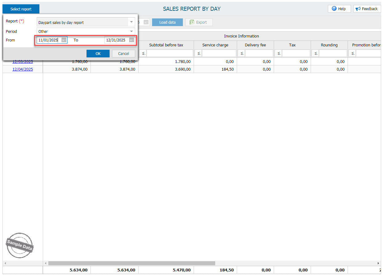 Note: Daypart summarizes all invoices generated within the designated time range. Daypart must cover a full 24 hours. Daypart allows for interday setup.