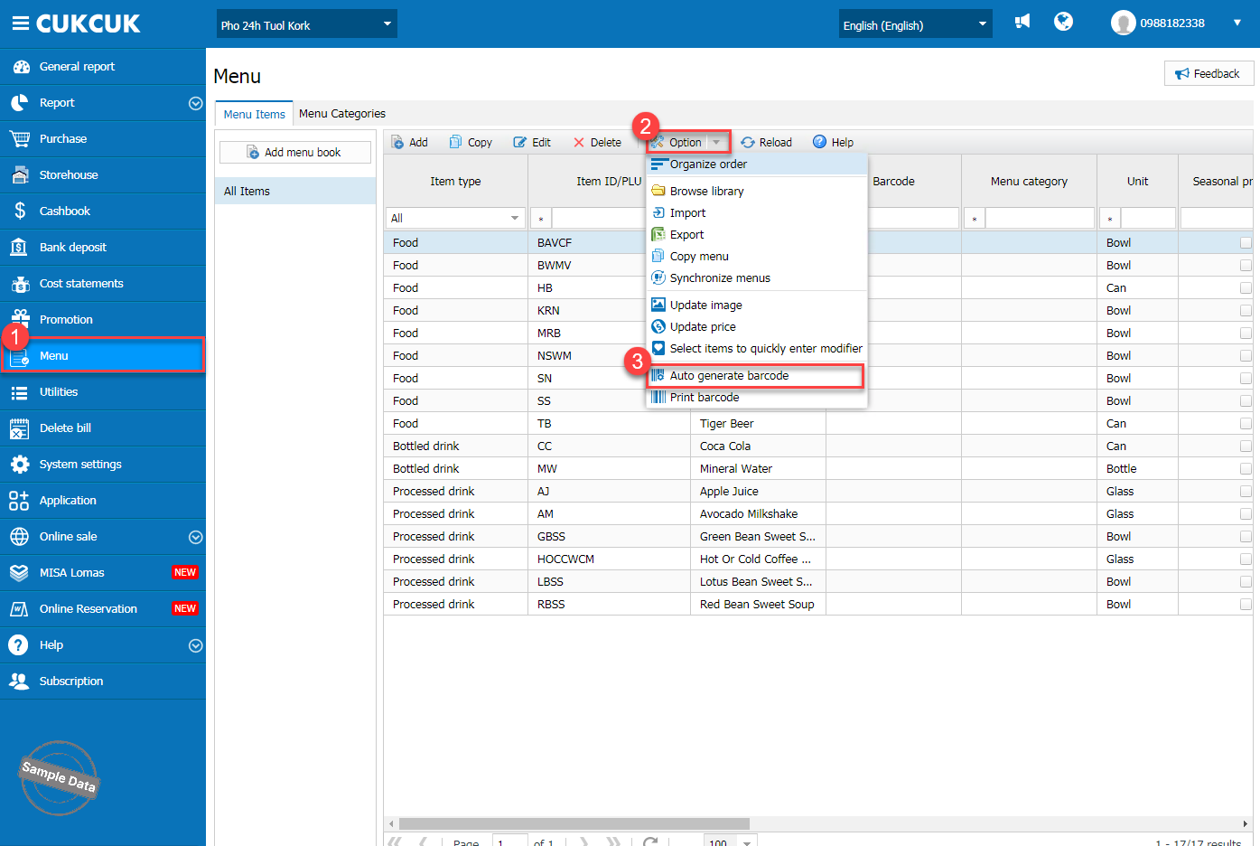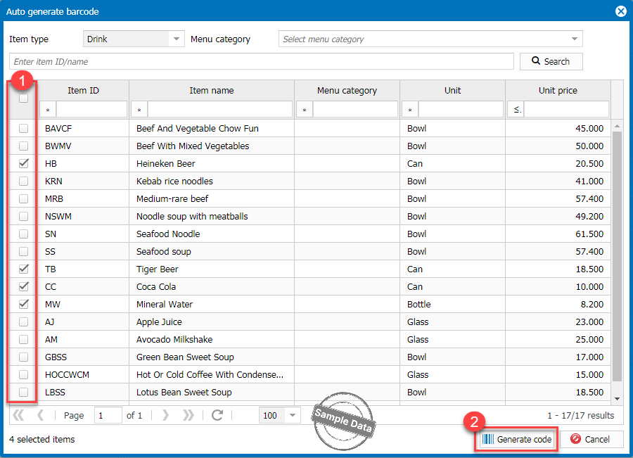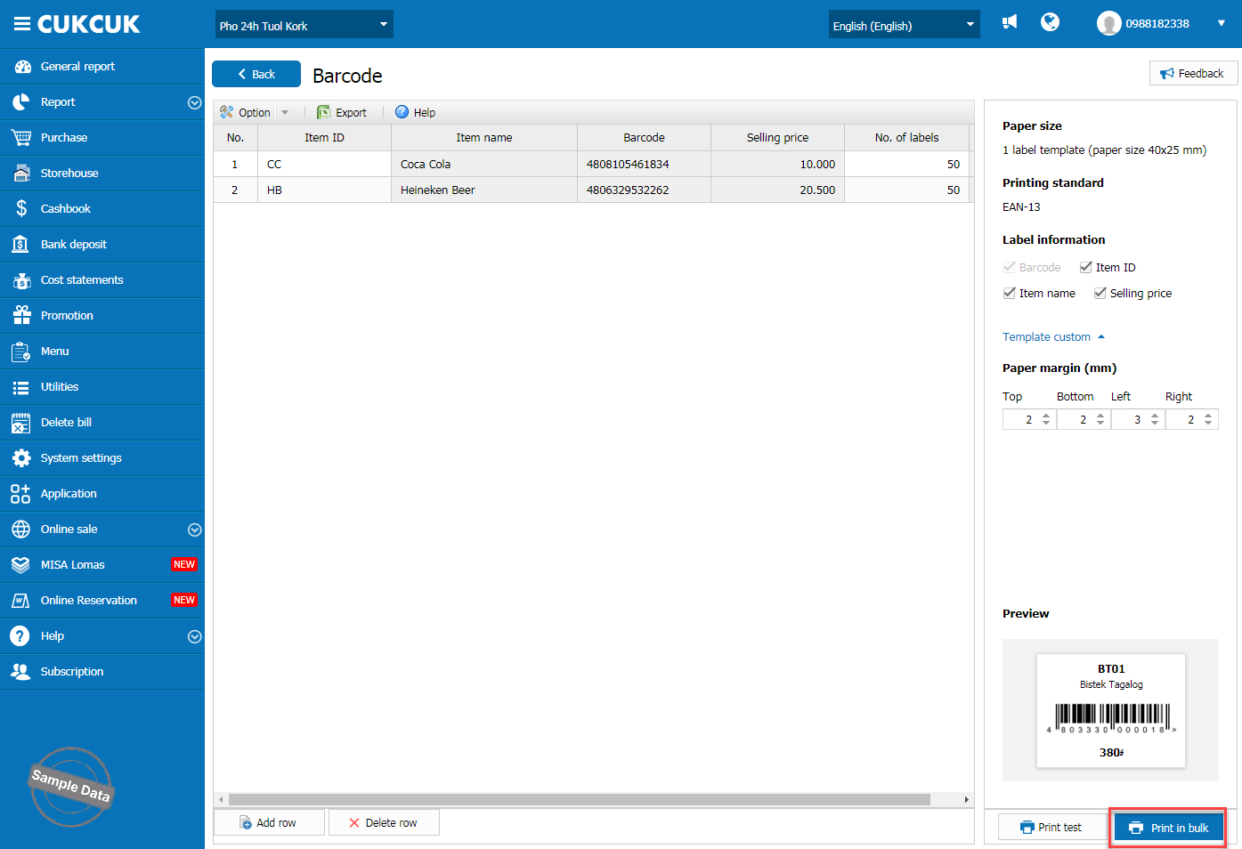 On the management page, go to System settings/General settings. On Purchase/Sale tab, click Edit on Sale part and check Manage items by barcode. Then, click Save.